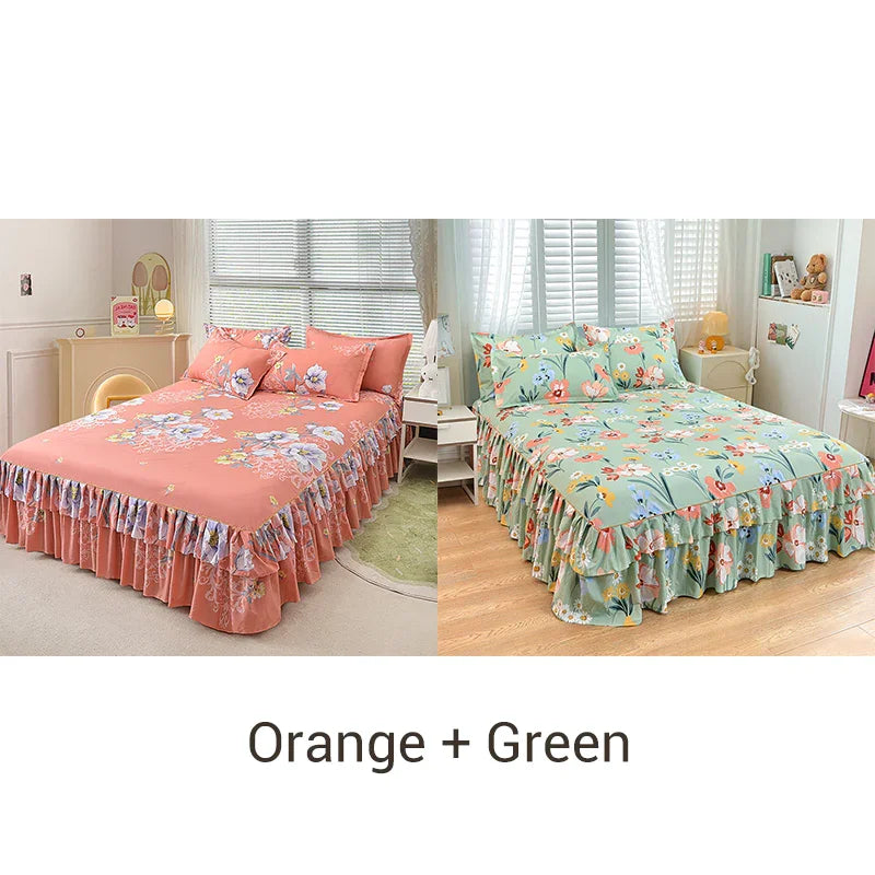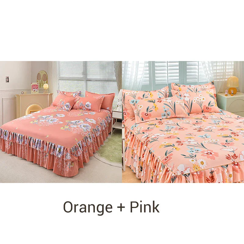 COMPLETE 3-DELIGE SET - Creëer moeiteloos een harmonieuze look met deze alles-in-één set. De set bevat een mooie bedrok en twee perfect bijpassende kussenslopen, waardoor u tijd en moeite bespaart bij het combineren van afzonderlijke stukken.