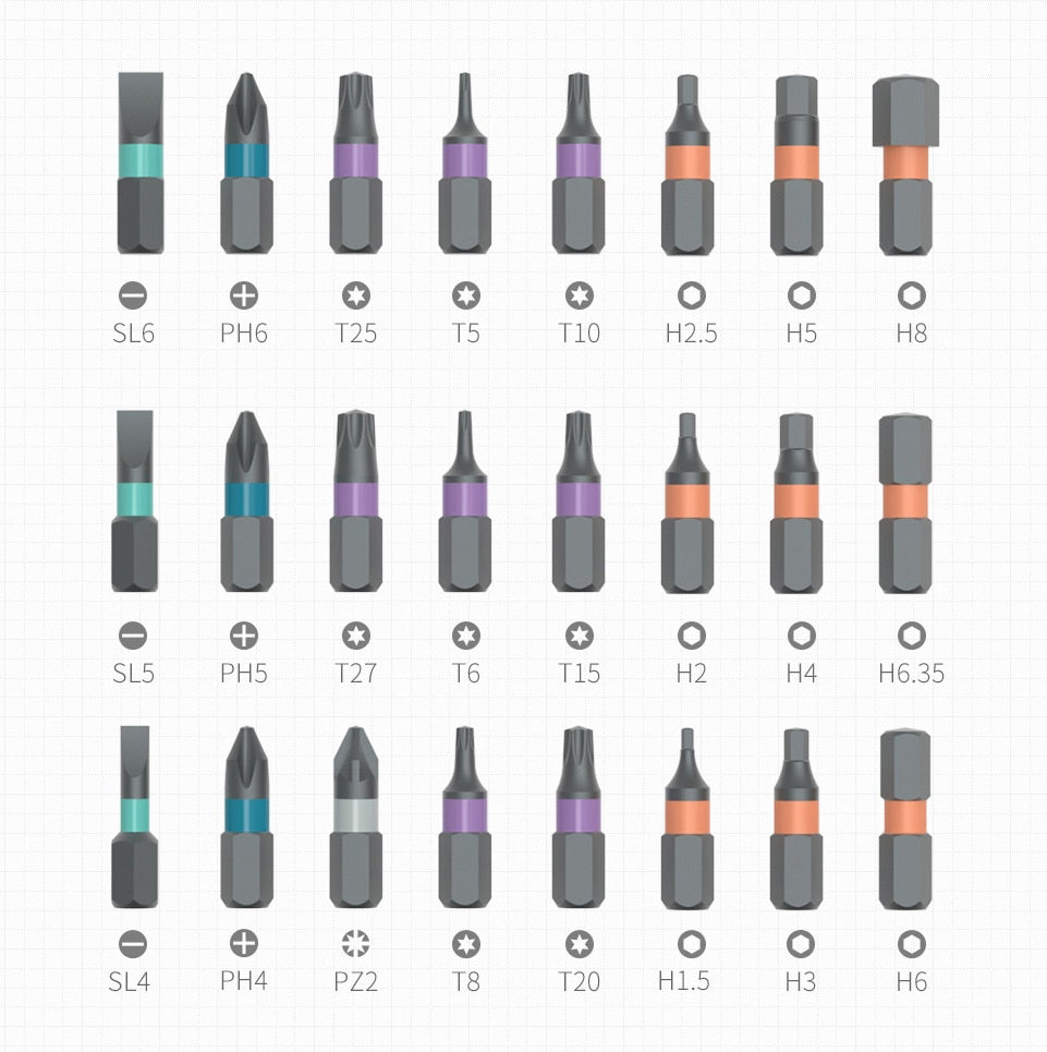 * Gemakkelijk herkenbaar kleurenringontwerp, de toegang tot de schroevendraaierkoppen is duidelijk