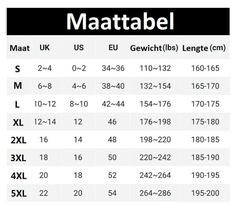 Maat: M, L, XL, 2XL, 3XL, 4XL