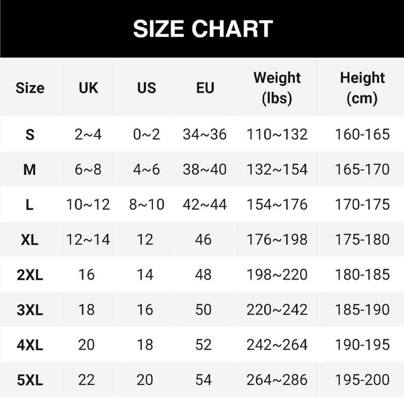 Maten: S, M, L, XL, 2XL, 3XL, 4XL, 5XL